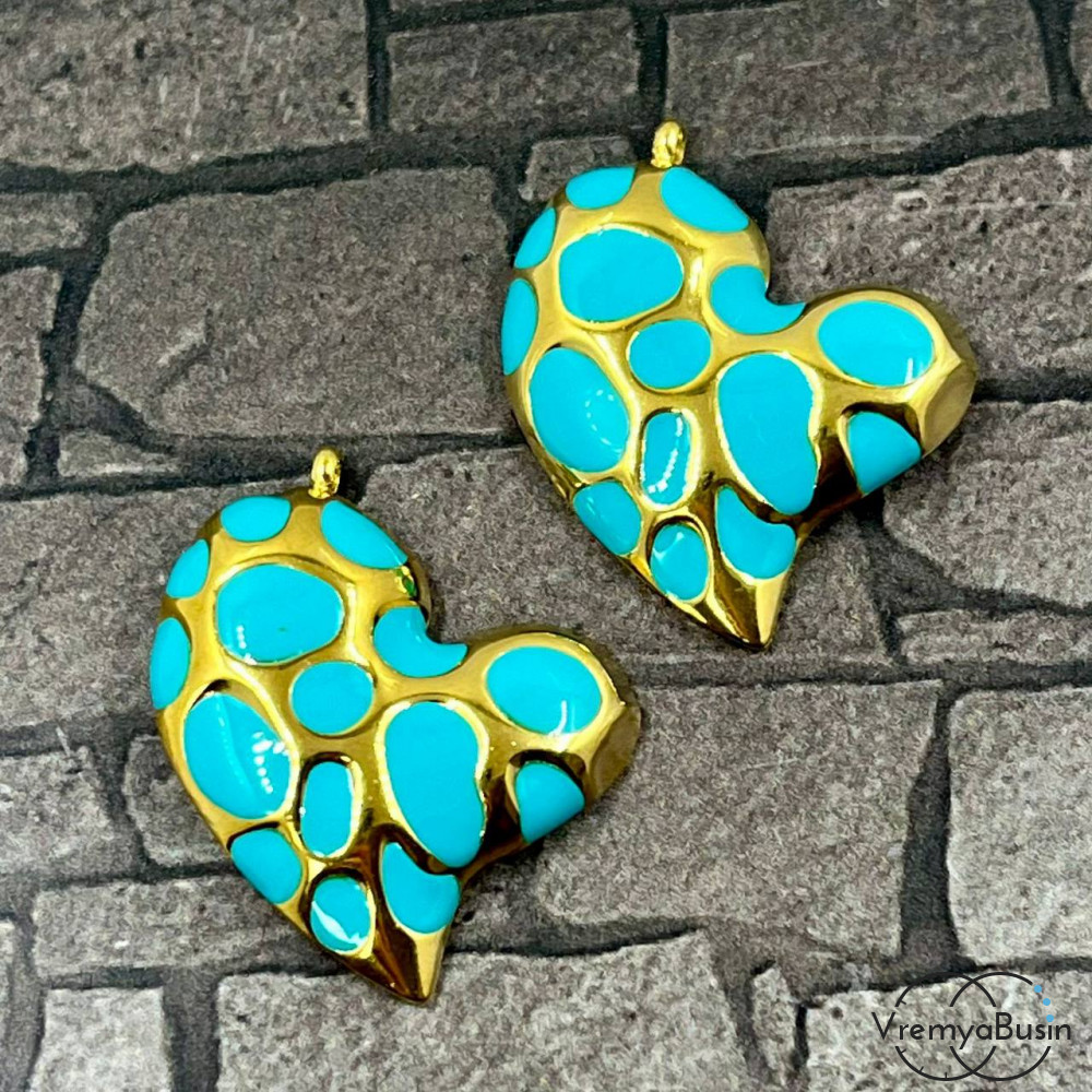 • Сердце, 24х29 мм, подвеска из нержавеющей стали с эмалью и позолотой (1 шт.)