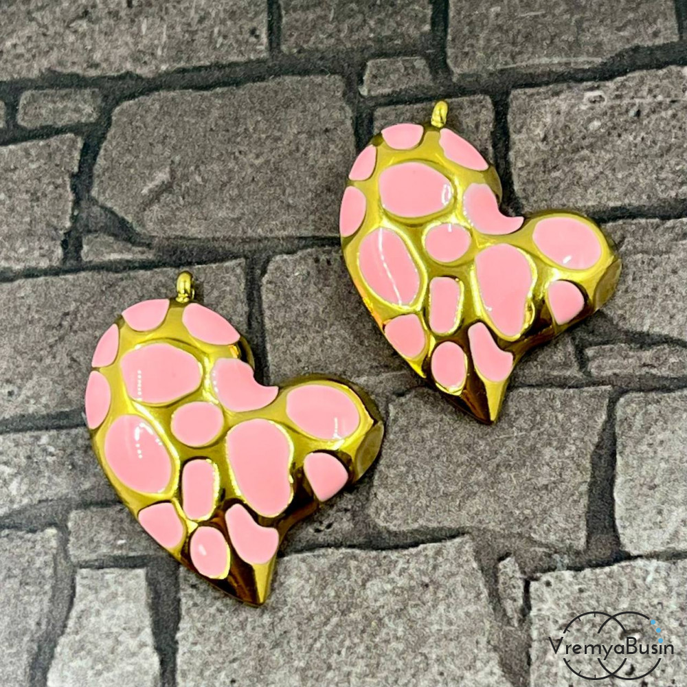 • Сердце, 24х29 мм, подвеска из нержавеющей стали с эмалью и позолотой (1 шт.)