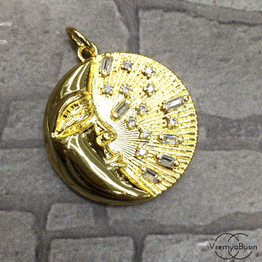Подвеска из латуни, 30 мм, с позолотой и фианитами (1 шт.)