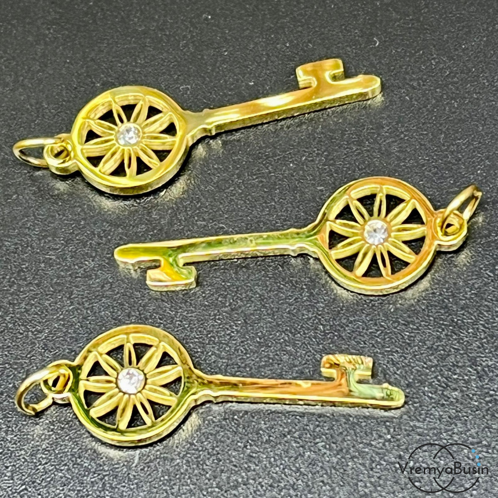 • Подвеска из латуни с позолотой и фианитами, ключ 10х30 мм  (1 шт.)