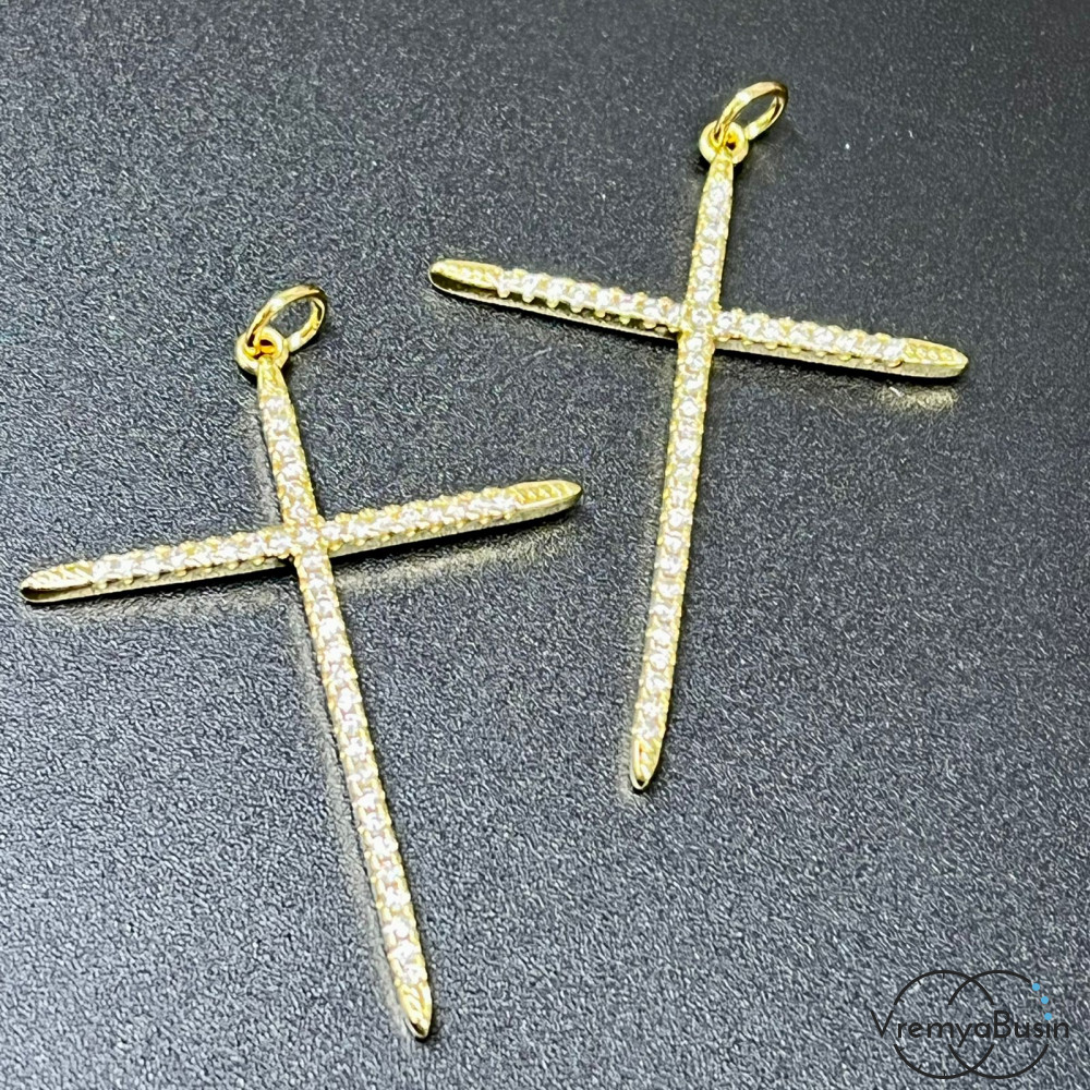 • Подвеска из латуни с позолотой и фианитами, крест 30х40 мм  (1 шт.)