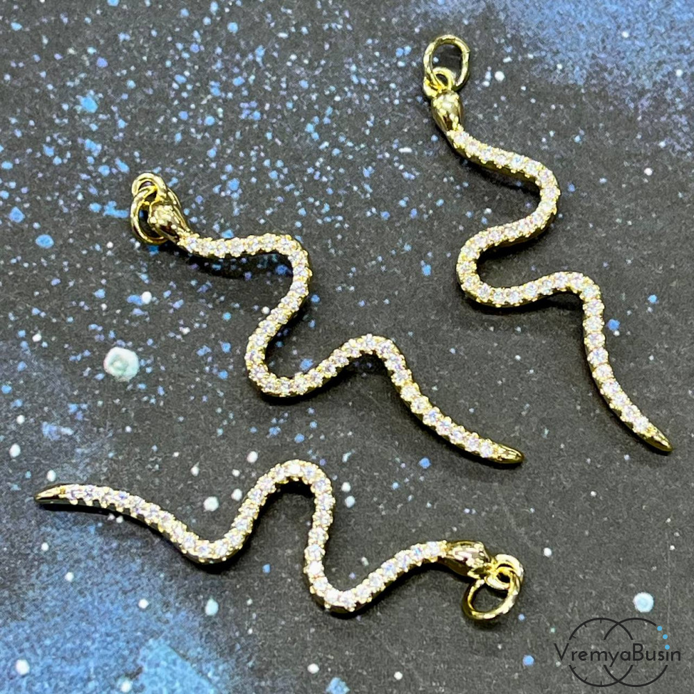 • Подвеска "Змея", 12х40 мм, из латуни с позолотой и фианитами  (1 шт.)
