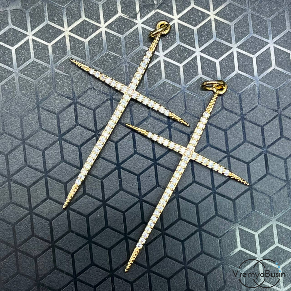 • Подвеска "Крест", 44х28 мм, из латуни с позолотой и фианитами  (1 шт.)