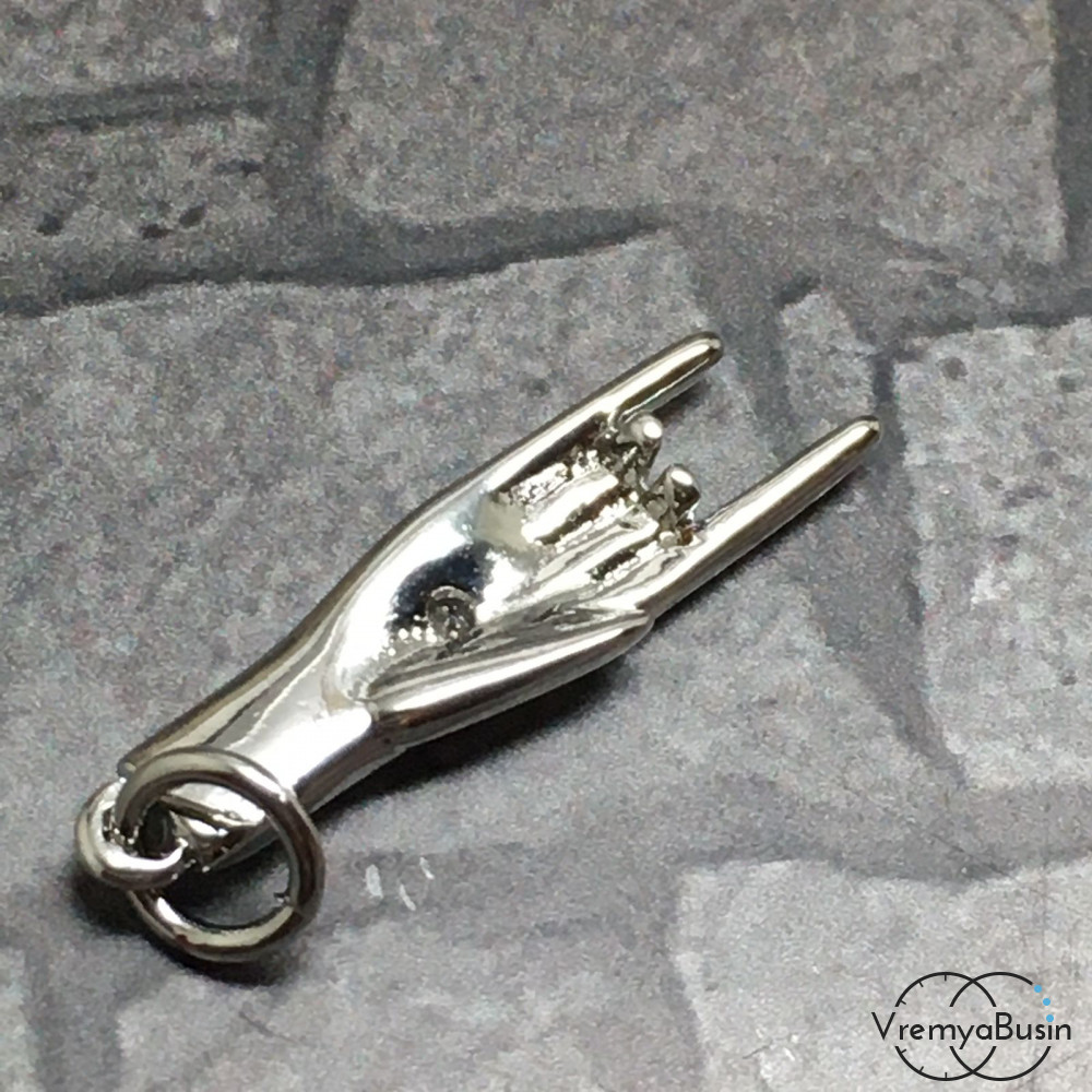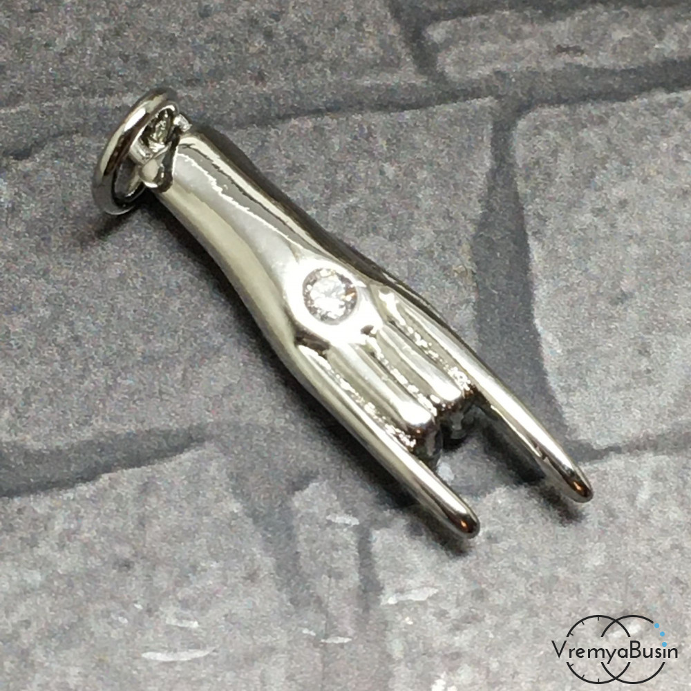 Подвеска "Рука" из латуни с родиевым покрытием, 6х22 мм (1 шт.)