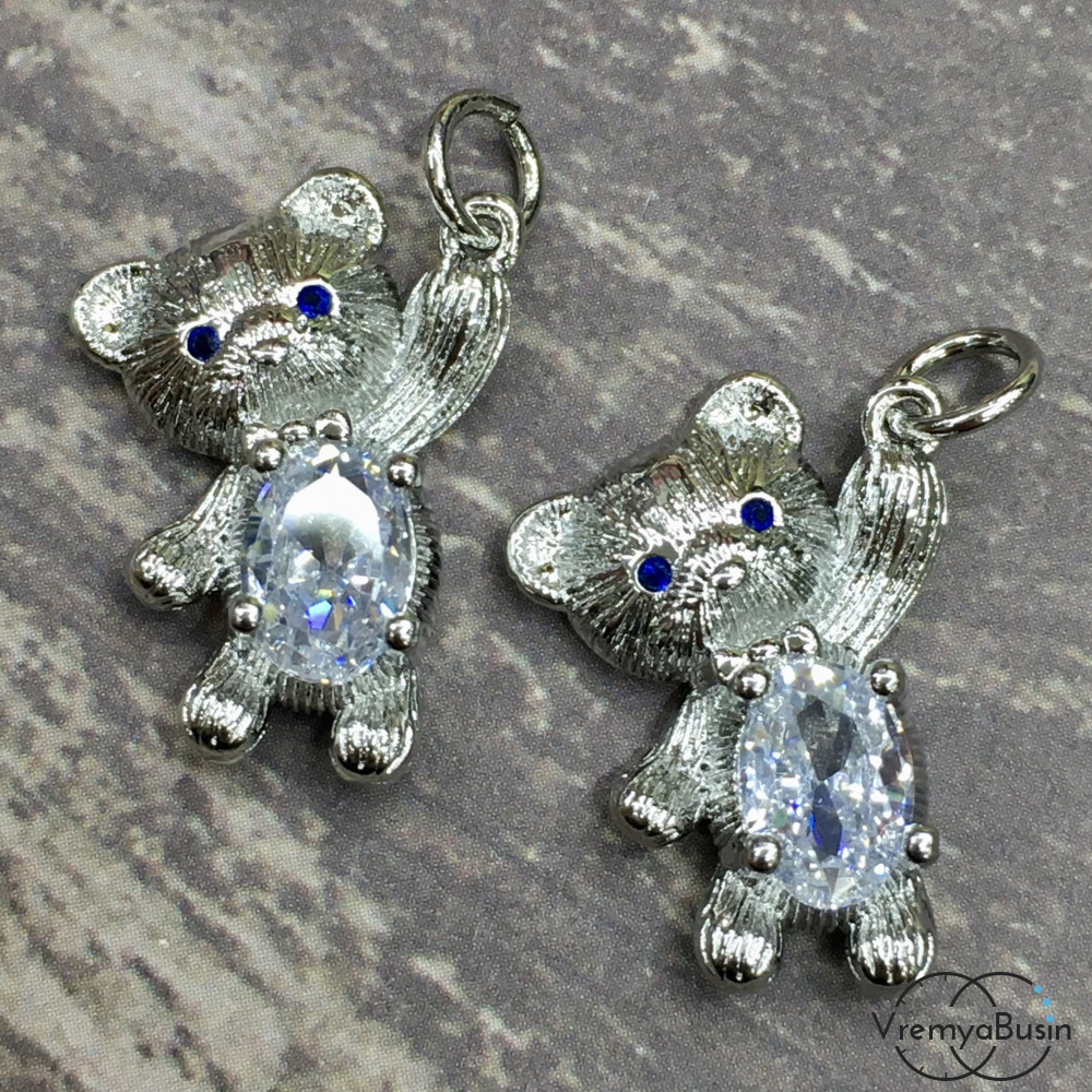 • Подвеска из латуни "Мишка", 14х20 мм, с родиевым покрытием и фианитами  (1 шт.)