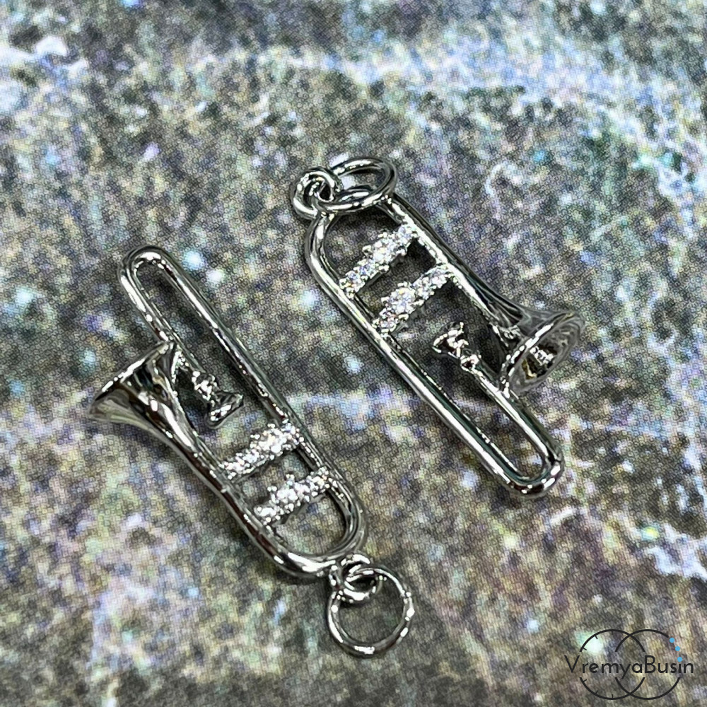 • Подвеска из латуни с родиевым покрытием и фианитами, труба 9х22 мм  (1 шт.)