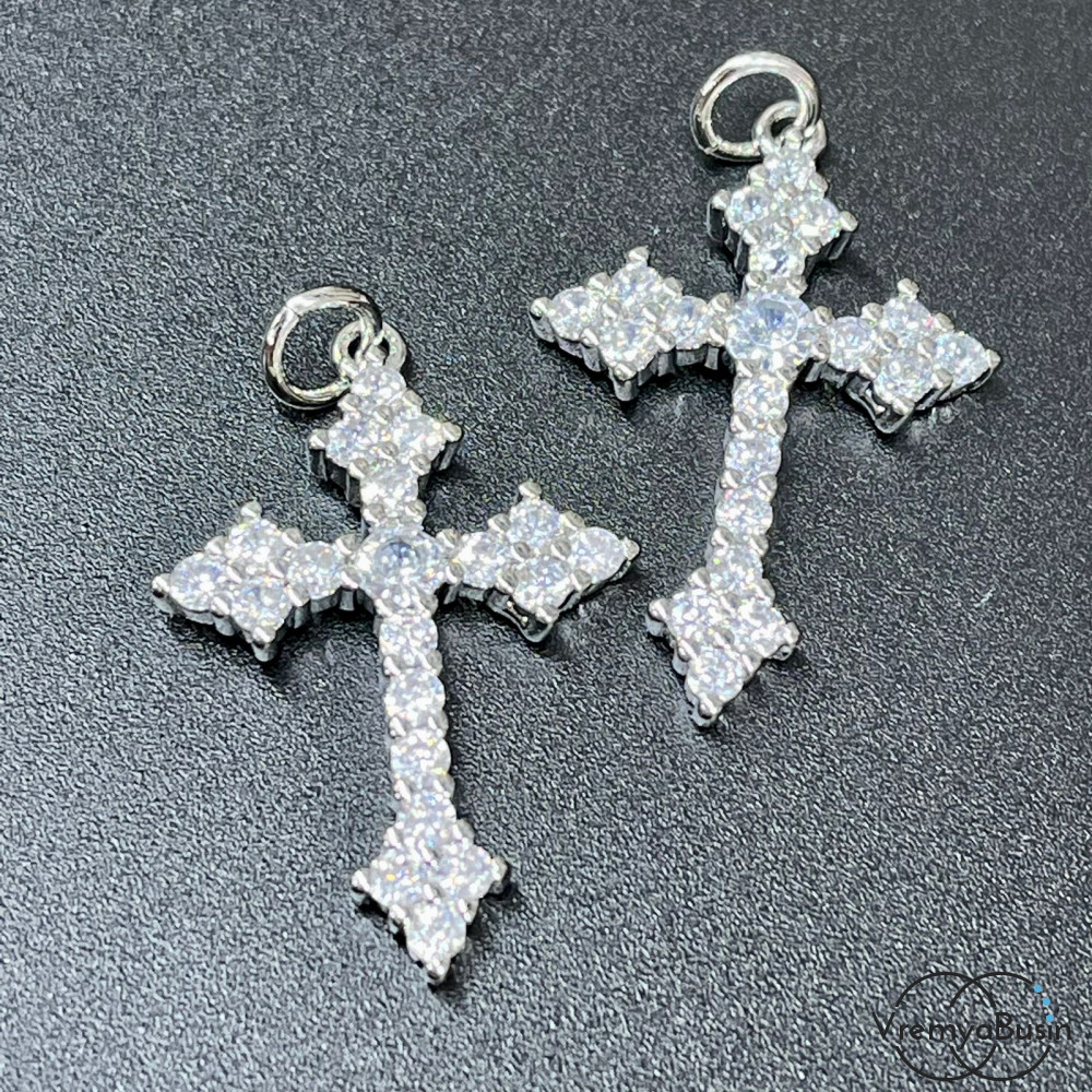 • Подвеска из латуни с родиевым покрытием и фианитами, крест 20х30 мм  (1 шт.)