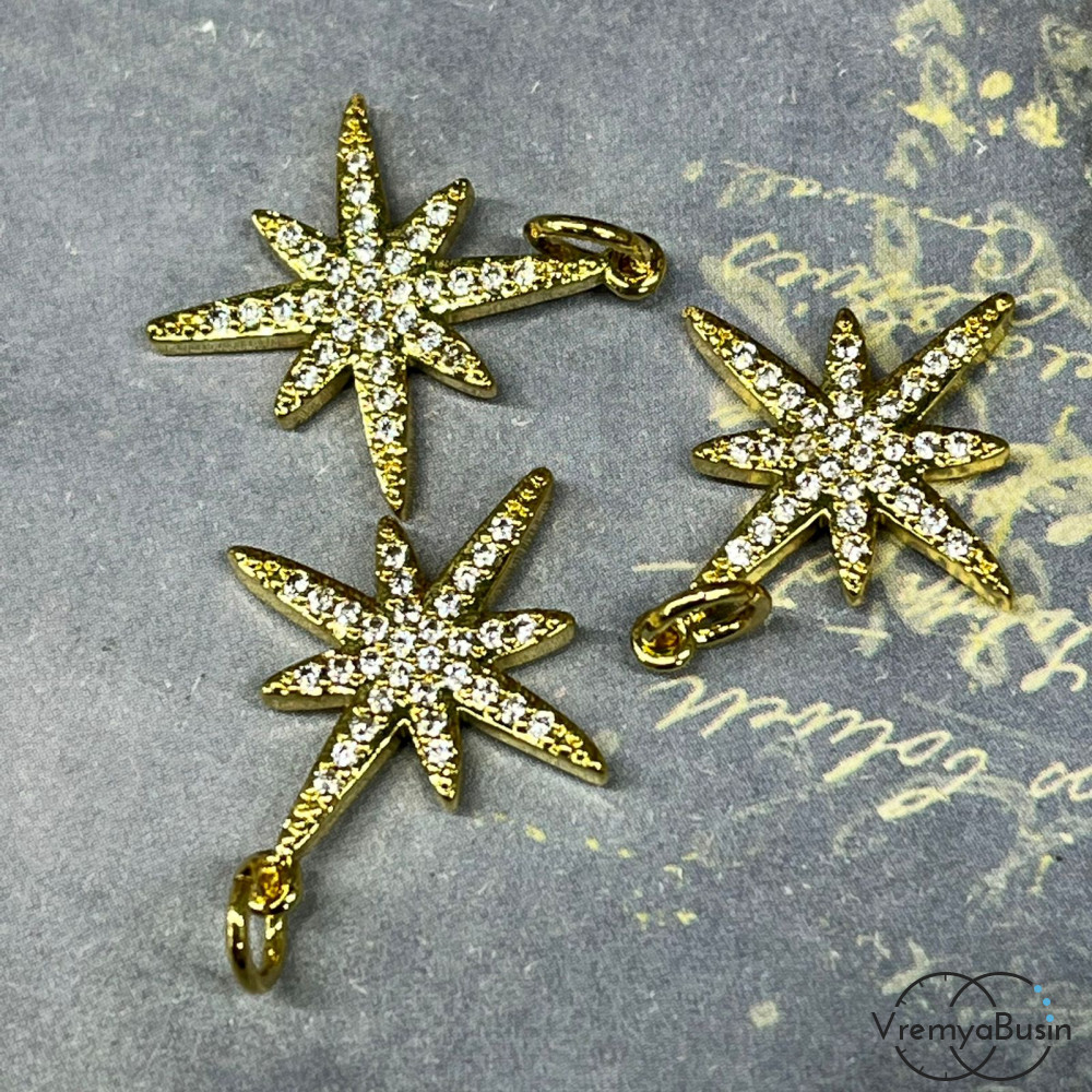 • Подвеска из латуни с позолотой и фианитами, зевзда 18х20 мм  (1 шт.)