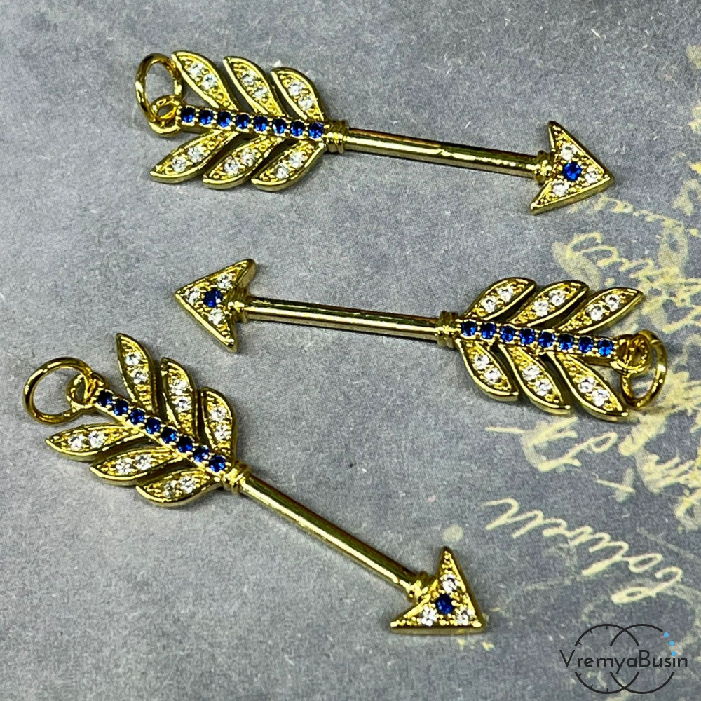 Подвеска из латуни с позолотой и фианитами, стрела 10х32 мм (1 шт.)