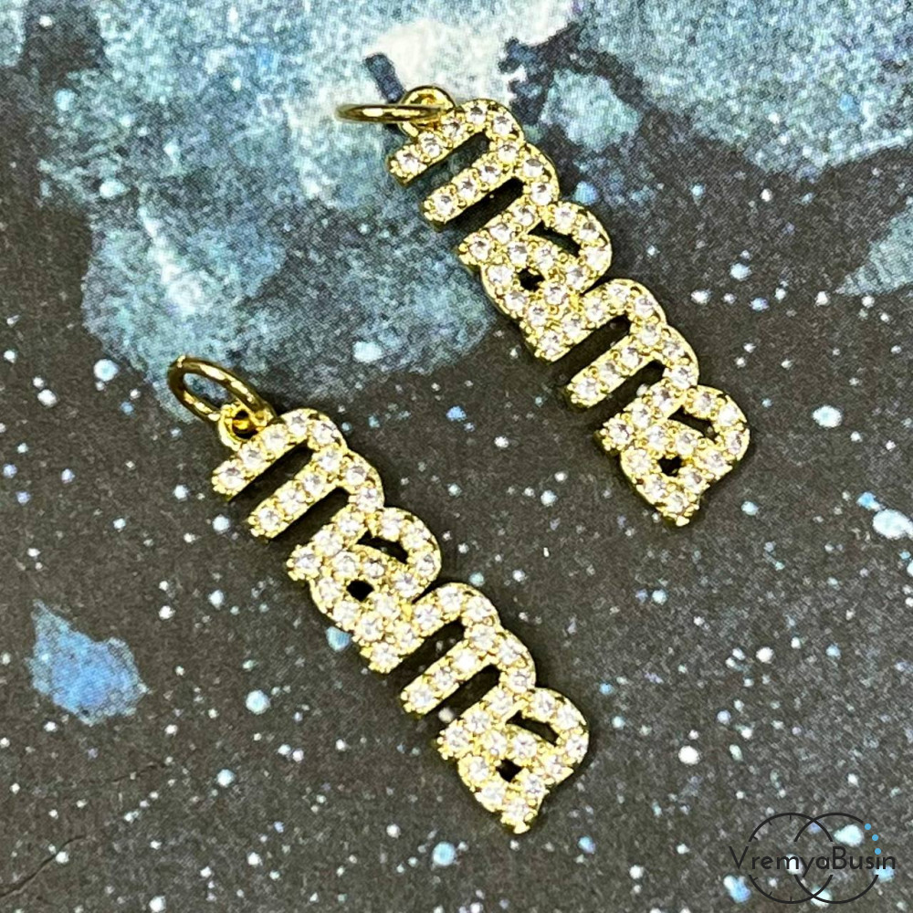 • Подвеска «Мама», 23х7 мм, из латуни с позолотой и фианитами  (1 шт.)
