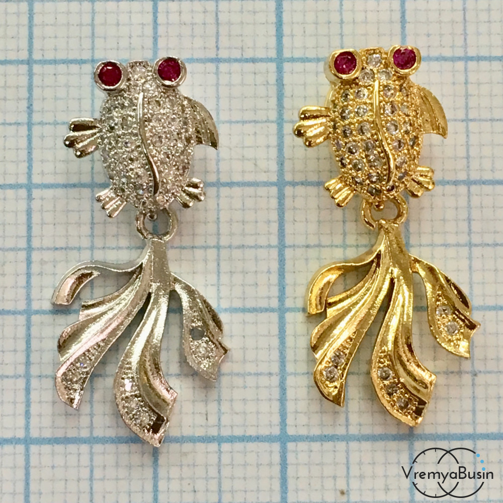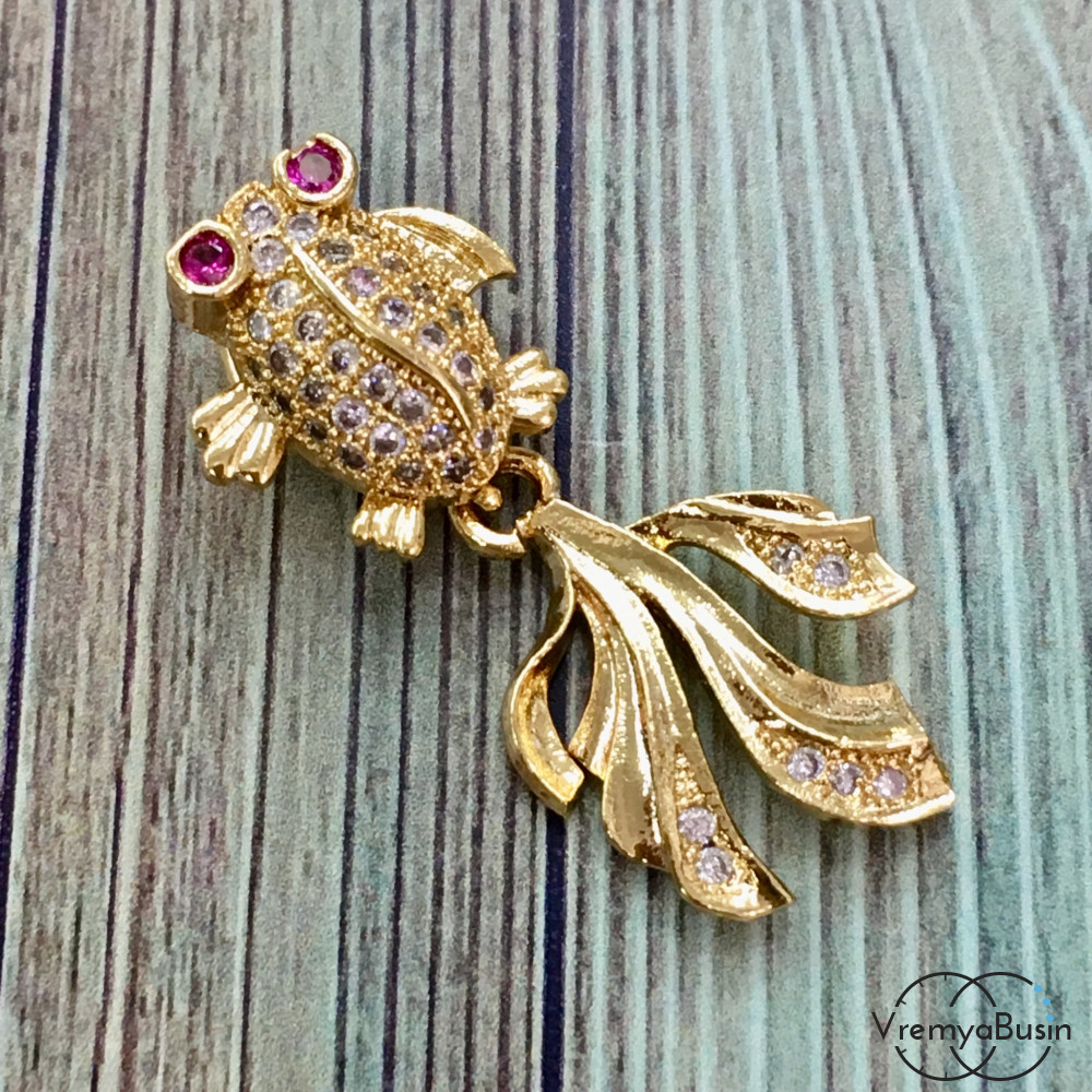 Подвеска с фианитами "Рыбка", латунь с позолотой (1 шт.)