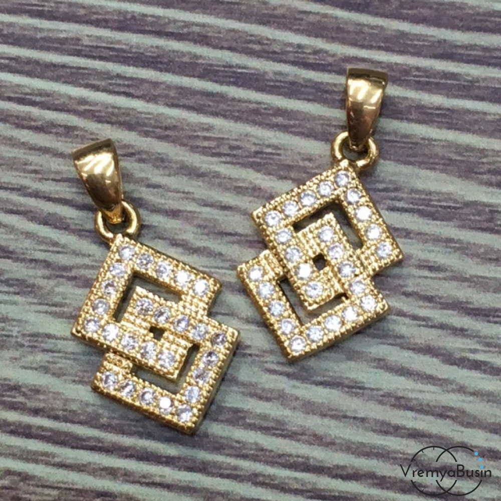 Подвеска с фианитами "Ромбы", латунь с позолотой (1 шт.)