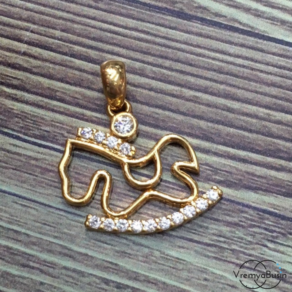 Подвеска с фианитами "Лошадка", латунь с позолотой (1 шт.)