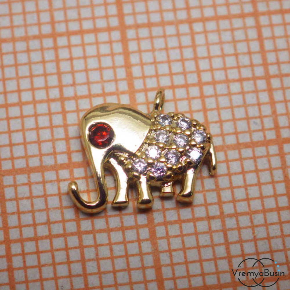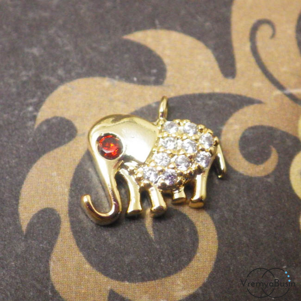 Подвеска с фианитами "Мини-слоник", латунь с позолотой (1 шт.)