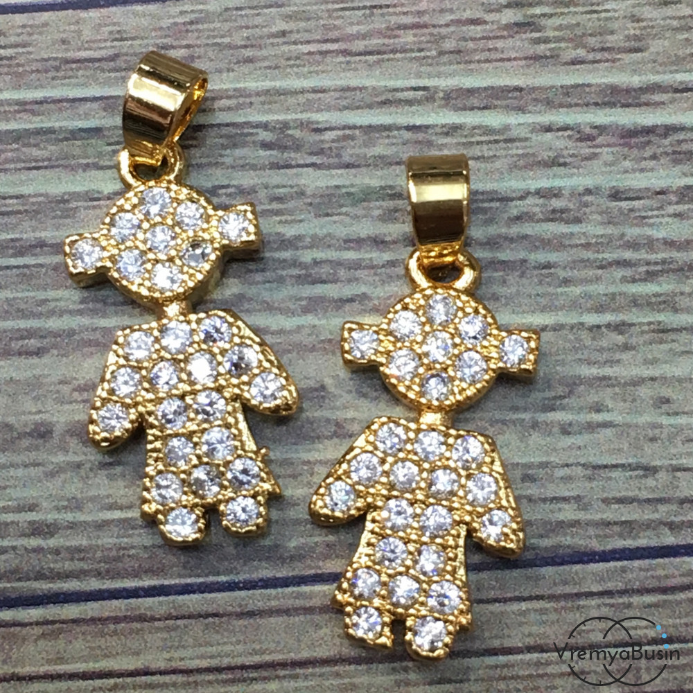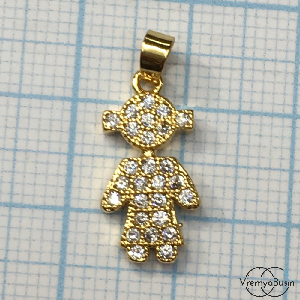 Подвеска с фианитами "Девочка", латунь с позолотой (1 шт.)