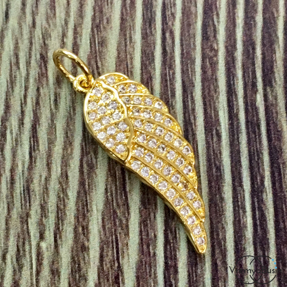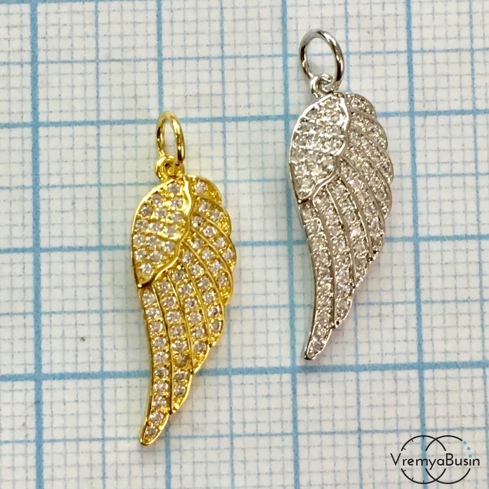 Подвеска с фианитами "Крыло", латунь с позолотой (1 шт.)