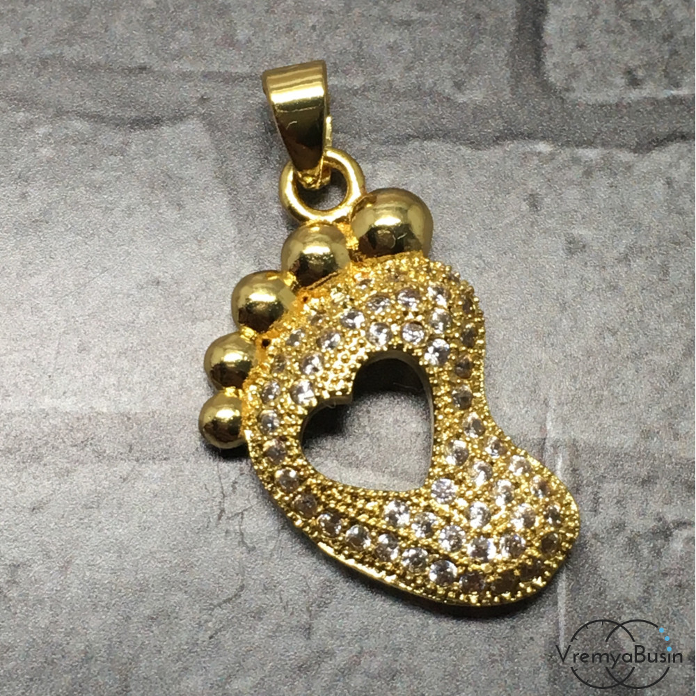 Подвеска с фианитами "След", 12х24 мм, латунь с позолотой (1 шт.)