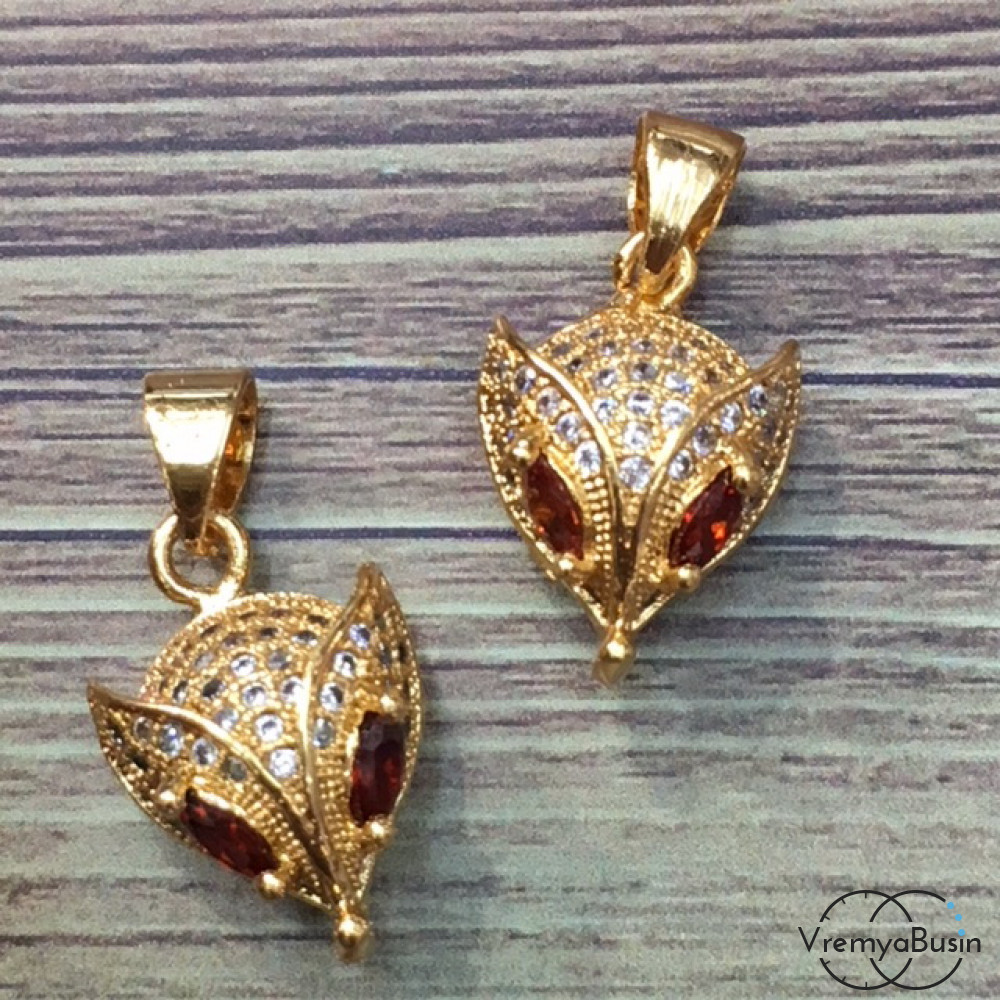Подвеска с фианитами "Лиса", латунь с позолотой (1 шт.)