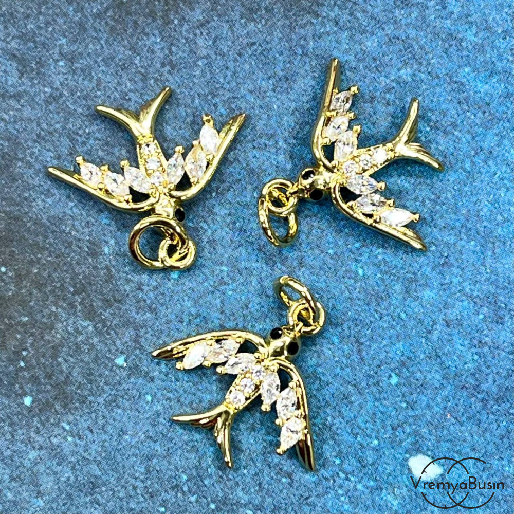 • Подвеска с фианитами "Ласточка", 15х17 мм, латунь с позолотой (1 шт.)