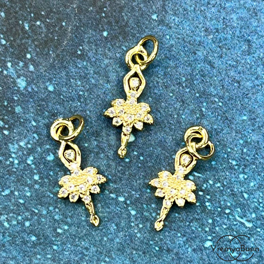 • Подвеска с фианитами "Балерина", 18х8 мм, латунь с позолотой (1 шт.)