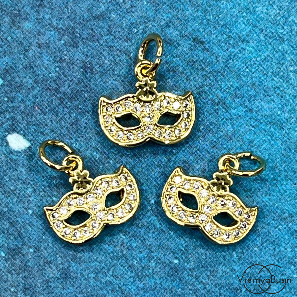 Подвеска с фианитами "Маска", 8х15 мм, латунь с позолотой (1 шт.)
