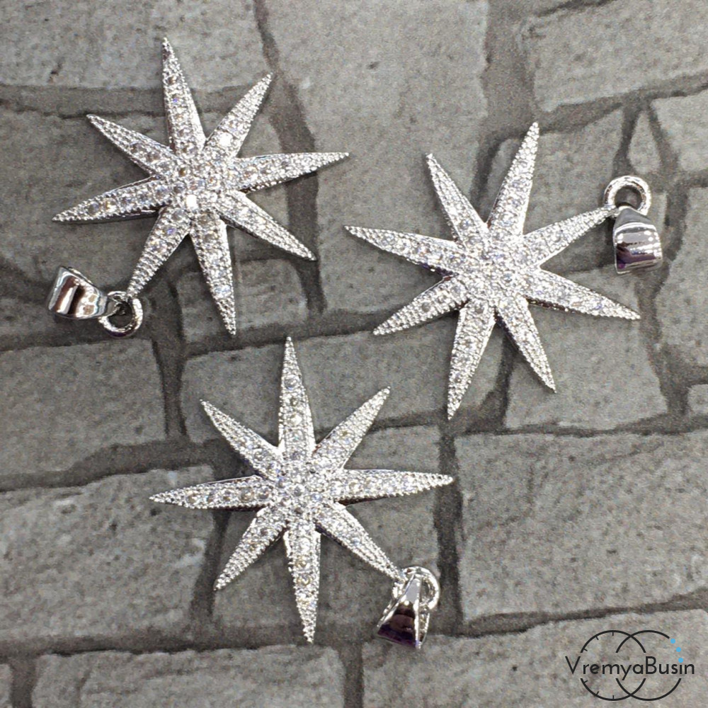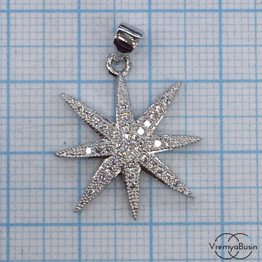 Подвеска с фианитами "Звезда" латунь с родиевым покрытием (1 шт.)