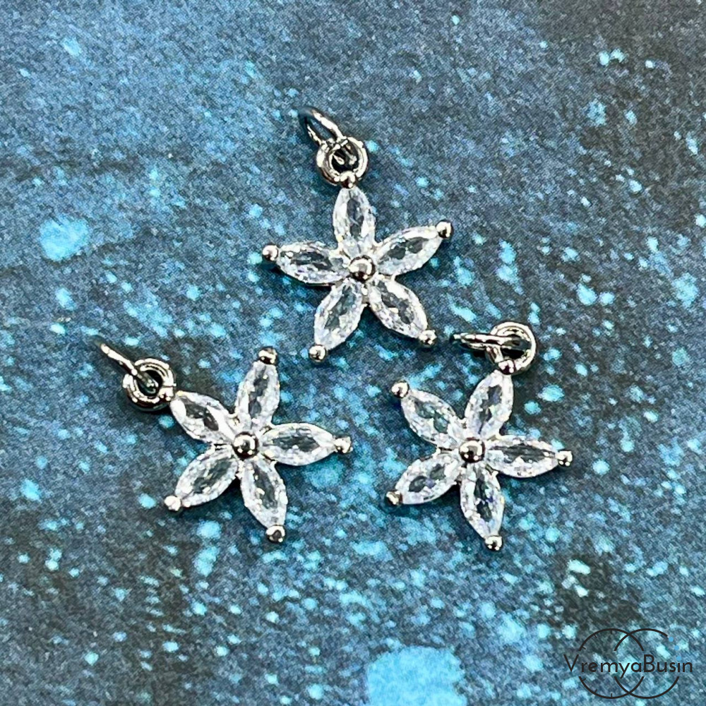 • Подвеска с фианитами "Цветок", 14х12 мм, латунь с родиевым покрытием (1 шт.)