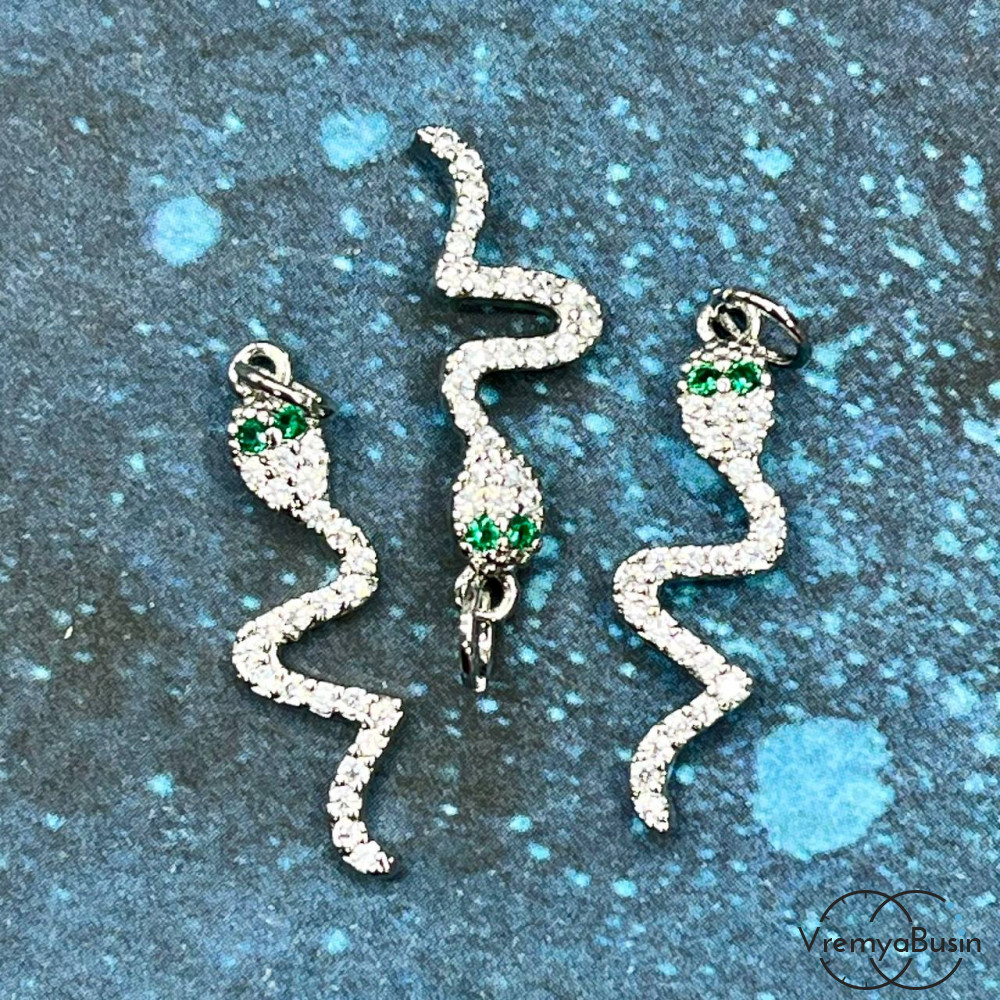 • Подвеска с фианитами "Змея", 22х8 мм, латунь с родиевым покрытием (1 шт.)