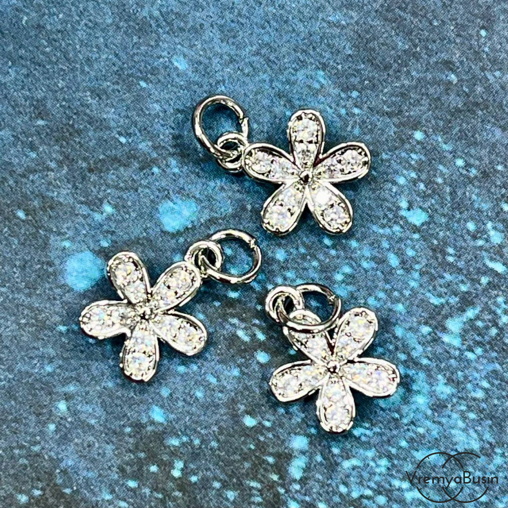 • Подвеска с фианитами "Цветочек", 12х10 мм, латунь с родиевым покрытием (1 шт.)