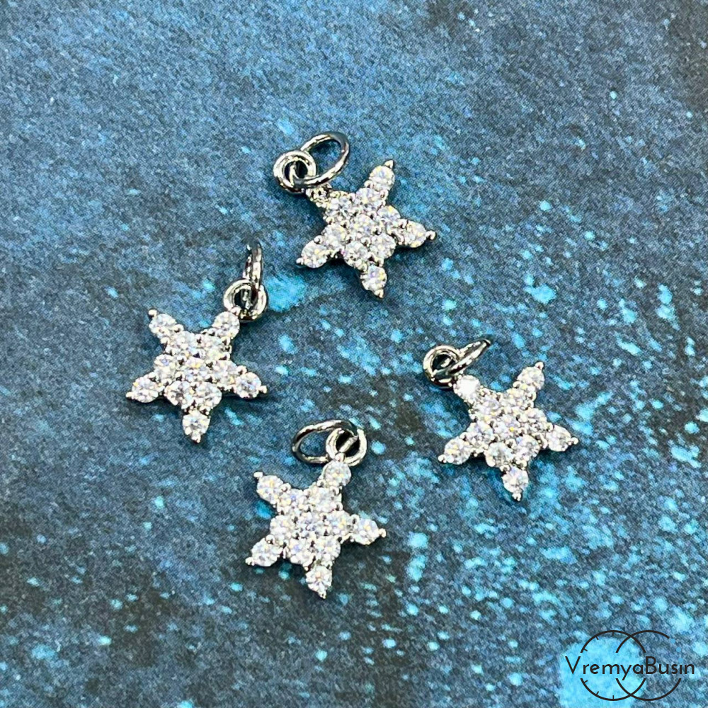 • Подвеска с фианитами "Звездочка", 12х10 мм, латунь с родиевым покрытием (1 шт.)