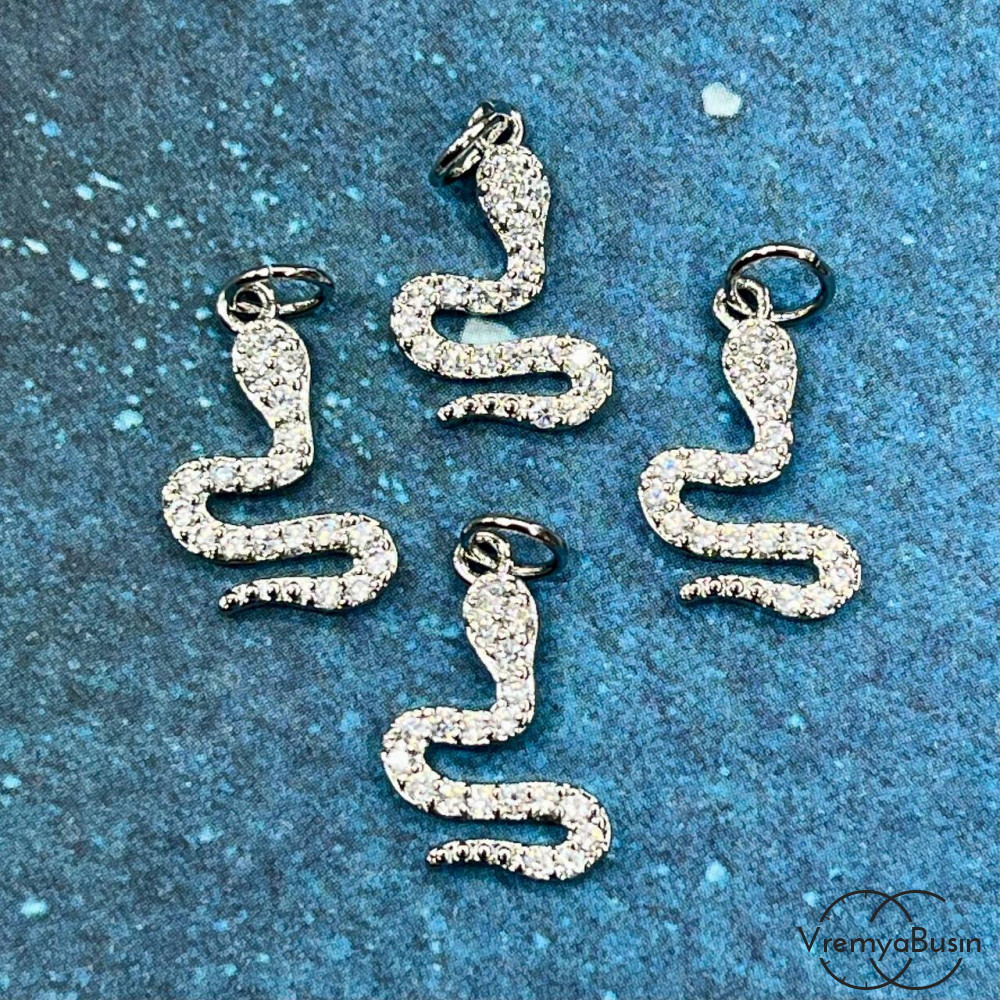 • Подвеска с фианитами "Змея", 15х11 мм, латунь с родиевым покрытием (1 шт.)