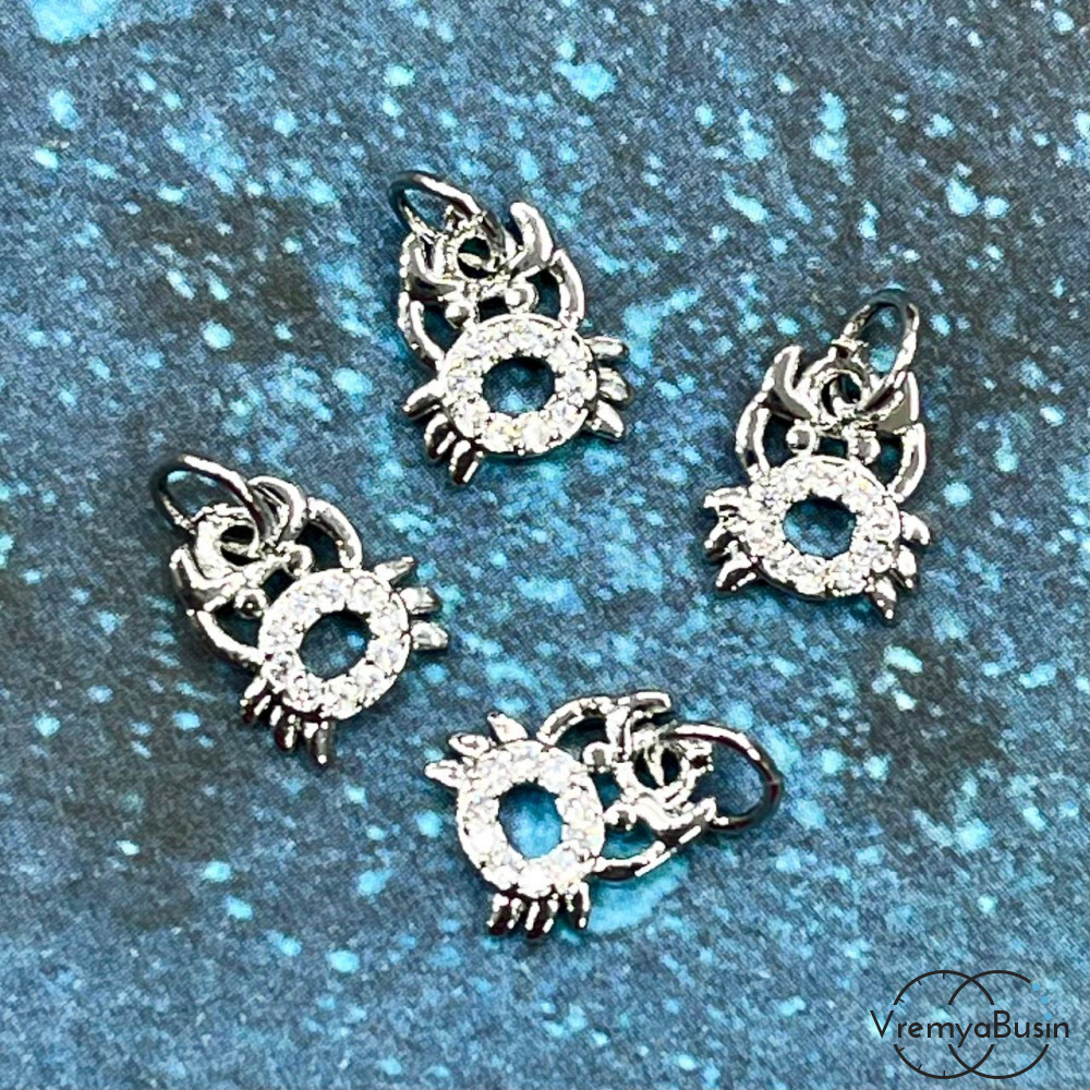 Подвеска с фианитами "Краб", 10х8 мм, латунь с родиевым покрытием (1 шт.)