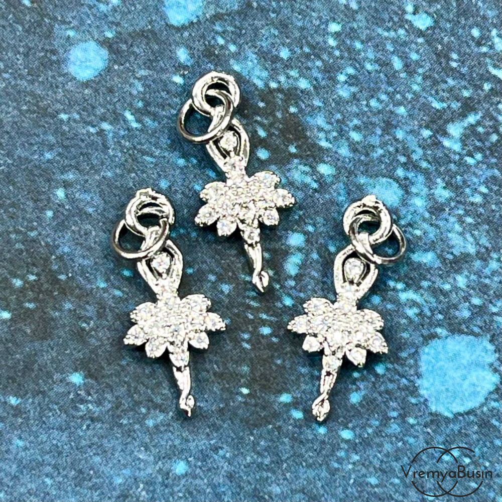Подвеска с фианитами "Балерина", 18х8 мм, латунь с родиевым покрытием (1 шт.)