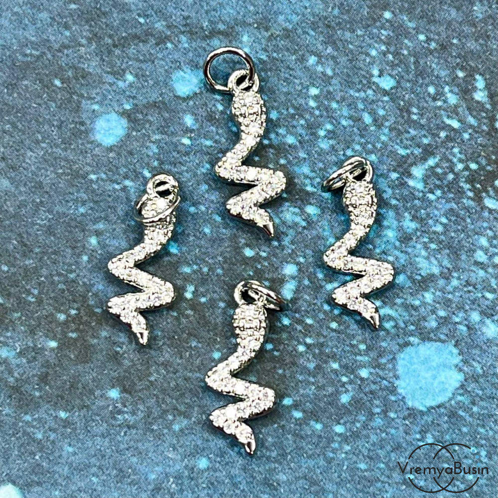 • Подвеска с фианитами "Змея", 16х7 мм, латунь с родиевым покрытием (1 шт.)