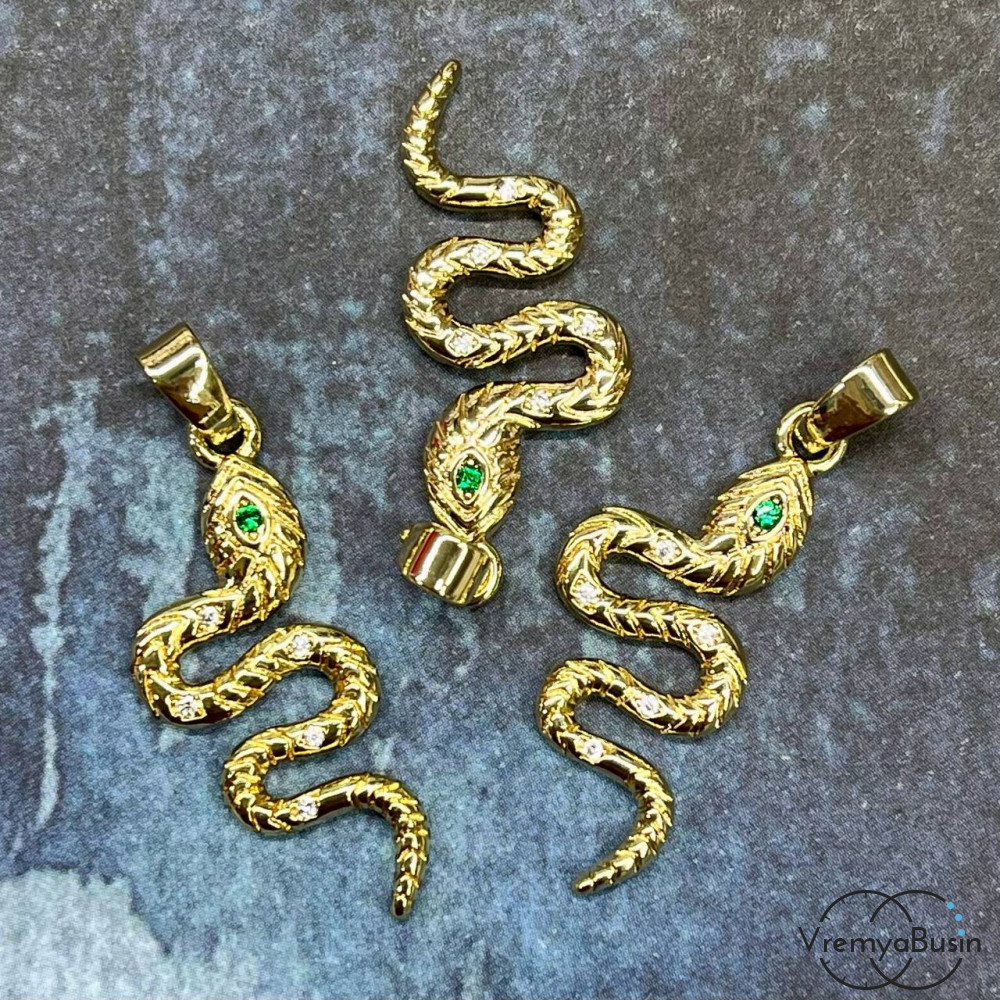 • Подвеска с фианитами "Змея", 30х13 мм, латунь с позолотой (1 шт.)