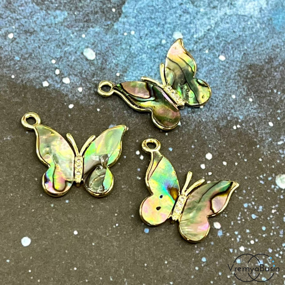 Подвеска с перламутром, бабочка 14х20 мм, латунь с позолотой (1 шт.)