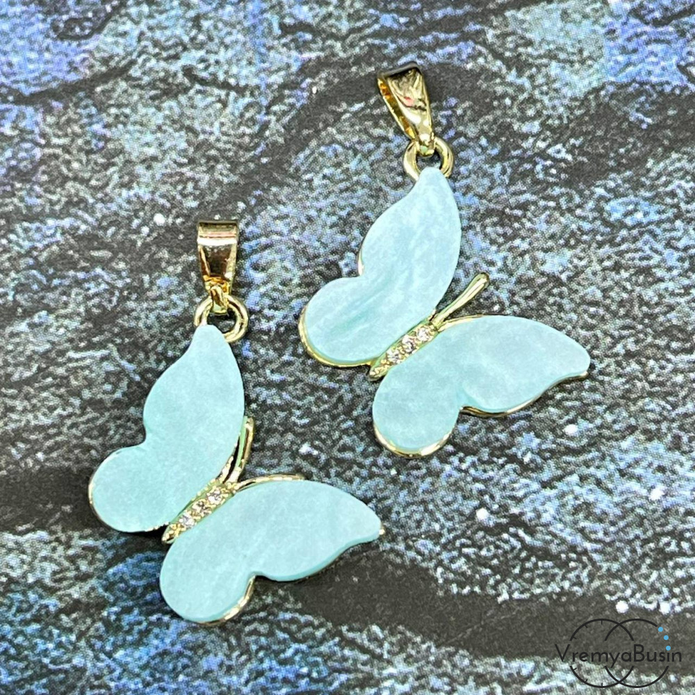 • Подвеска с перламутром "Бабочка", 18х22 мм, латунь с позолотой (1 шт.)