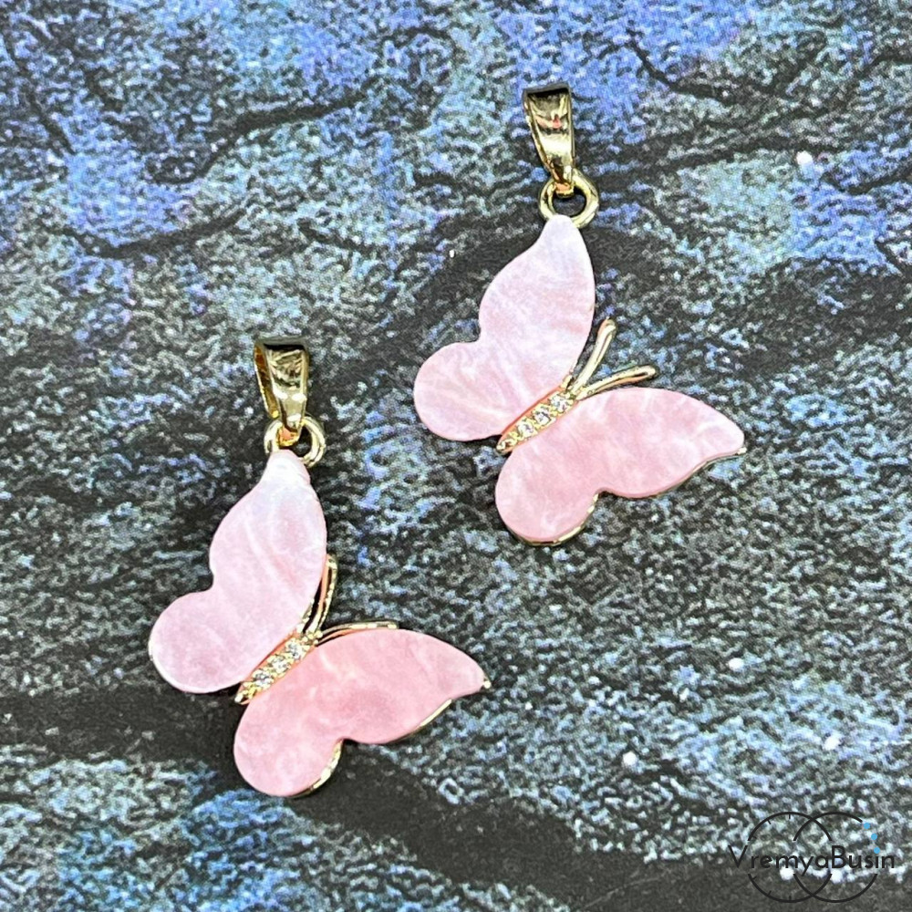 • Подвеска с перламутром "Бабочка", 18х22 мм, латунь с позолотой (1 шт.)
