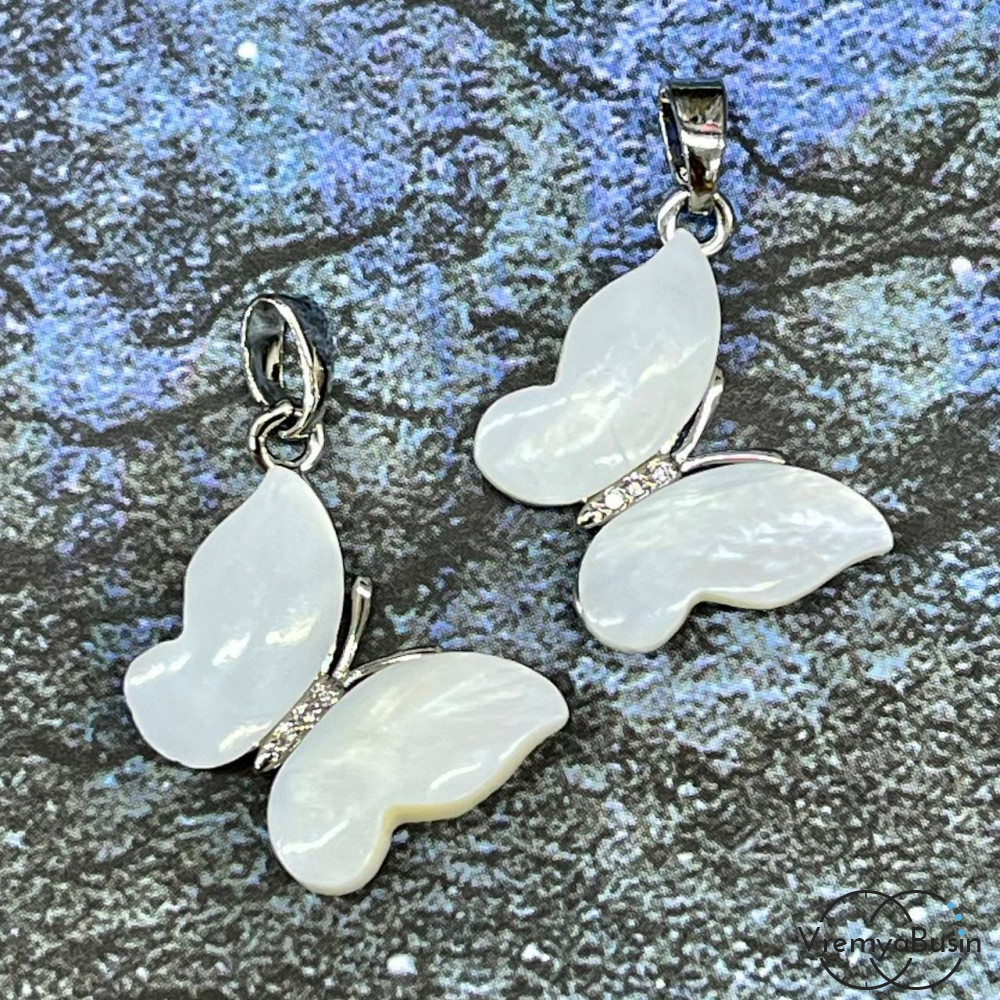 • Подвеска с перламутром "Бабочка", 18х22 мм, латунь с родиевым покрытием (1 шт.)