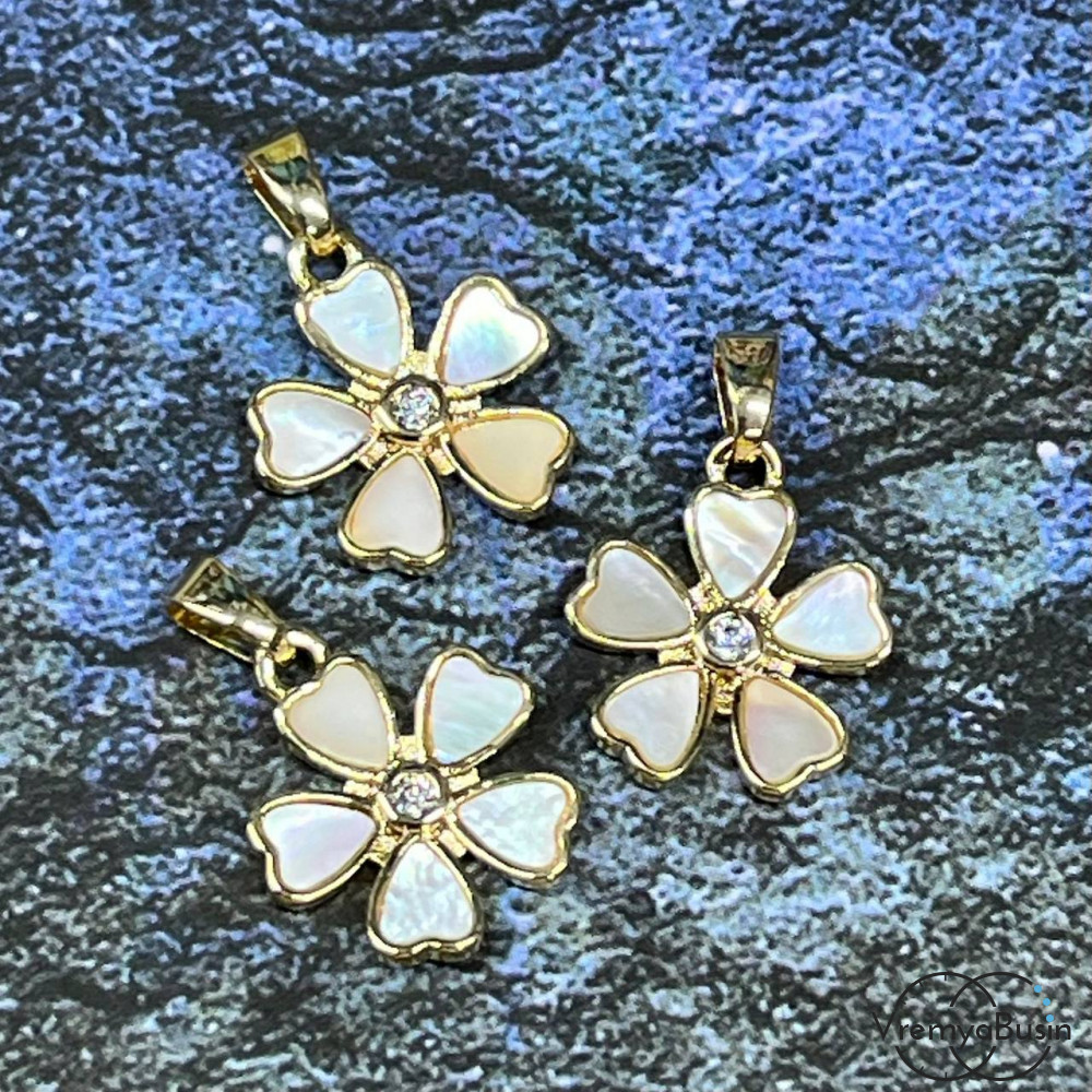 • Подвеска с перламутром "Цветочек", 13х15 мм, латунь с позолотой (1 шт.)