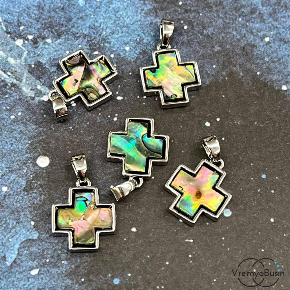 • Подвеска с перламутром, крест 12х14 мм, латунь с позолотой (1 шт.)