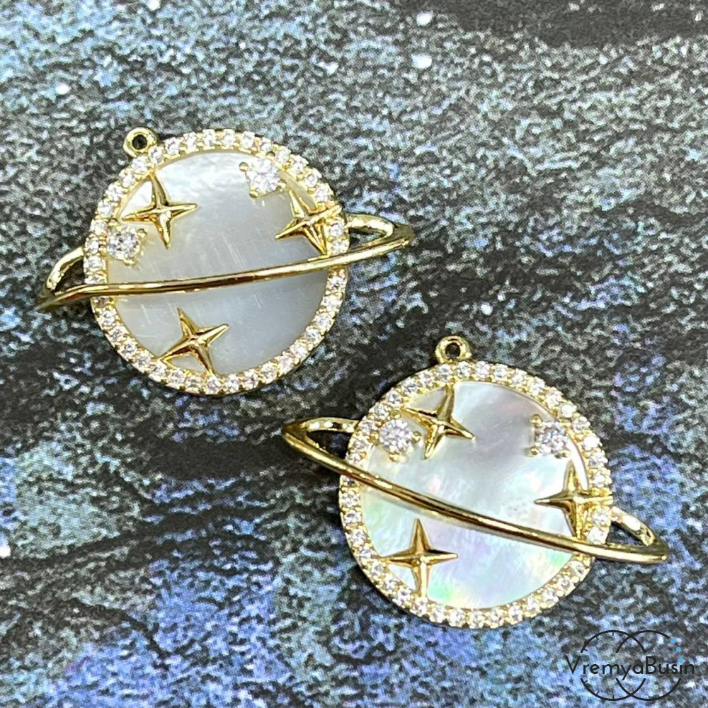 Подвеска с перламутром "Планета", 17х24 мм, латунь с позолотой (1 шт.)