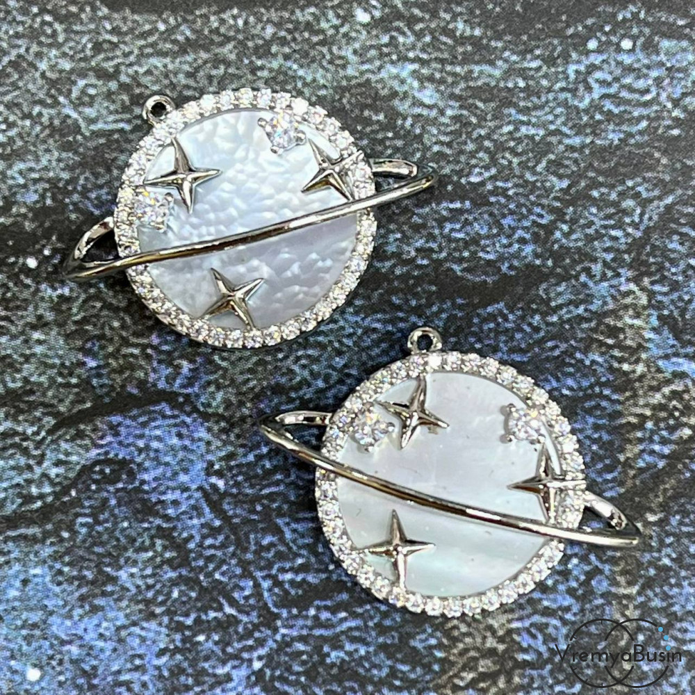 Подвеска с перламутром "Планета", 17х24 мм, латунь с родиевым покрытием (1 шт.)