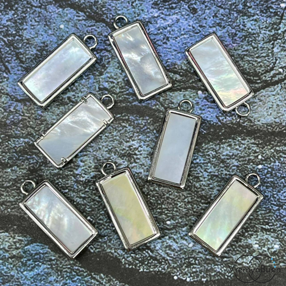 • Подвеска с перламутром, прямоугольник 8х18 мм, латунь с родиевым покрытием (1 шт.)