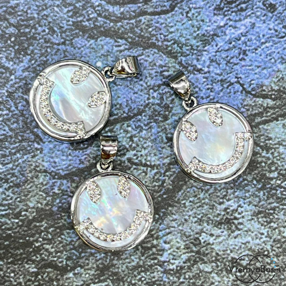 • Подвеска с перламутром, смайлик 12 мм, латунь с родиевым покрытием (1 шт.)