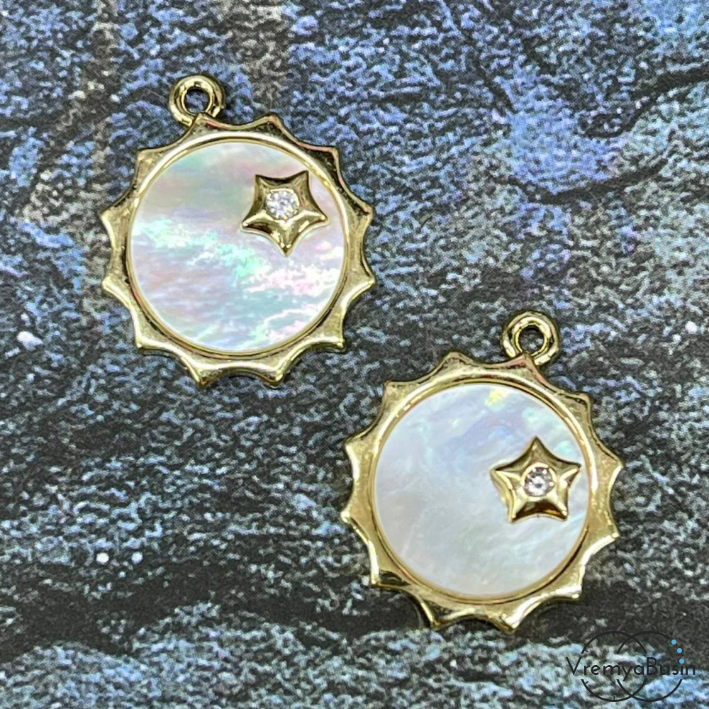 • Подвеска с перламутром "Солнце", 18 мм, латунь с позолотой (1 шт.)