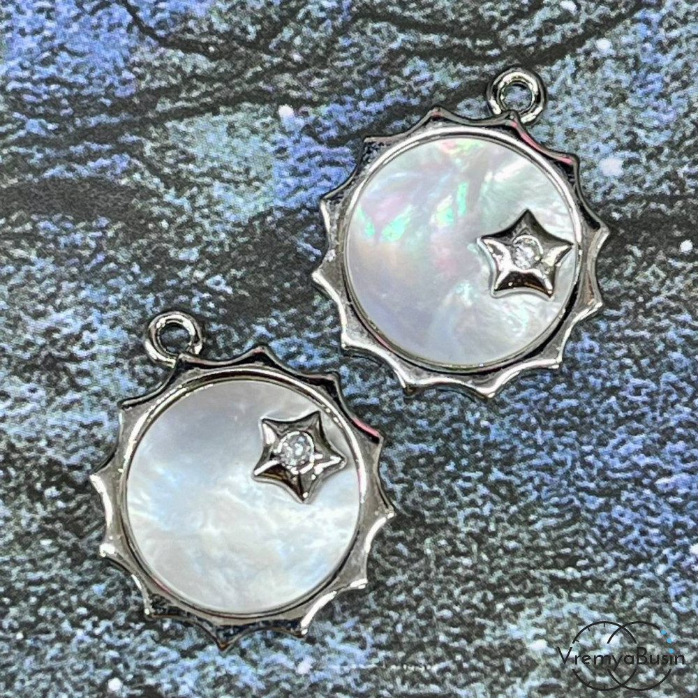 • Подвеска с перламутром "Солнце", 18 мм, латунь с родиевым покрытием (1 шт.)