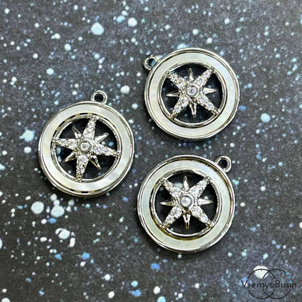 • Подвеска с перламутром "Звезда", 14 мм, латунь с родиевым покрытием (1 шт.)