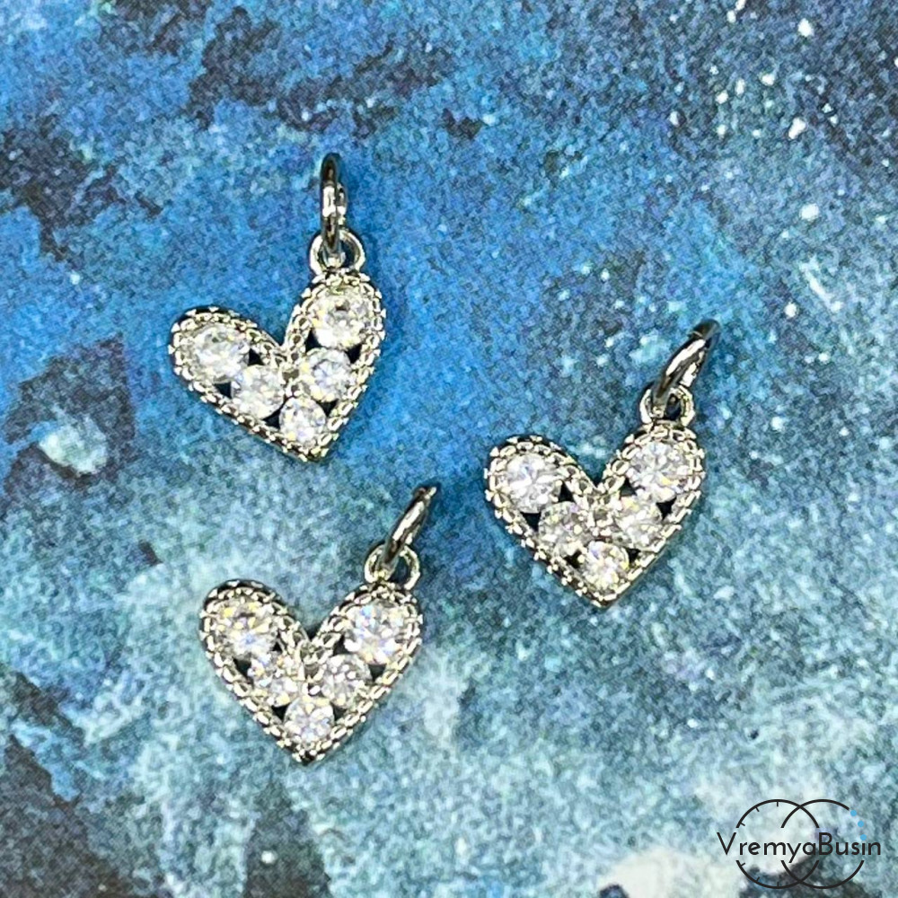 Подвеска «Сердце», 11х10 мм, из латуни с родиевым покрытием и фианитами (1 шт.)