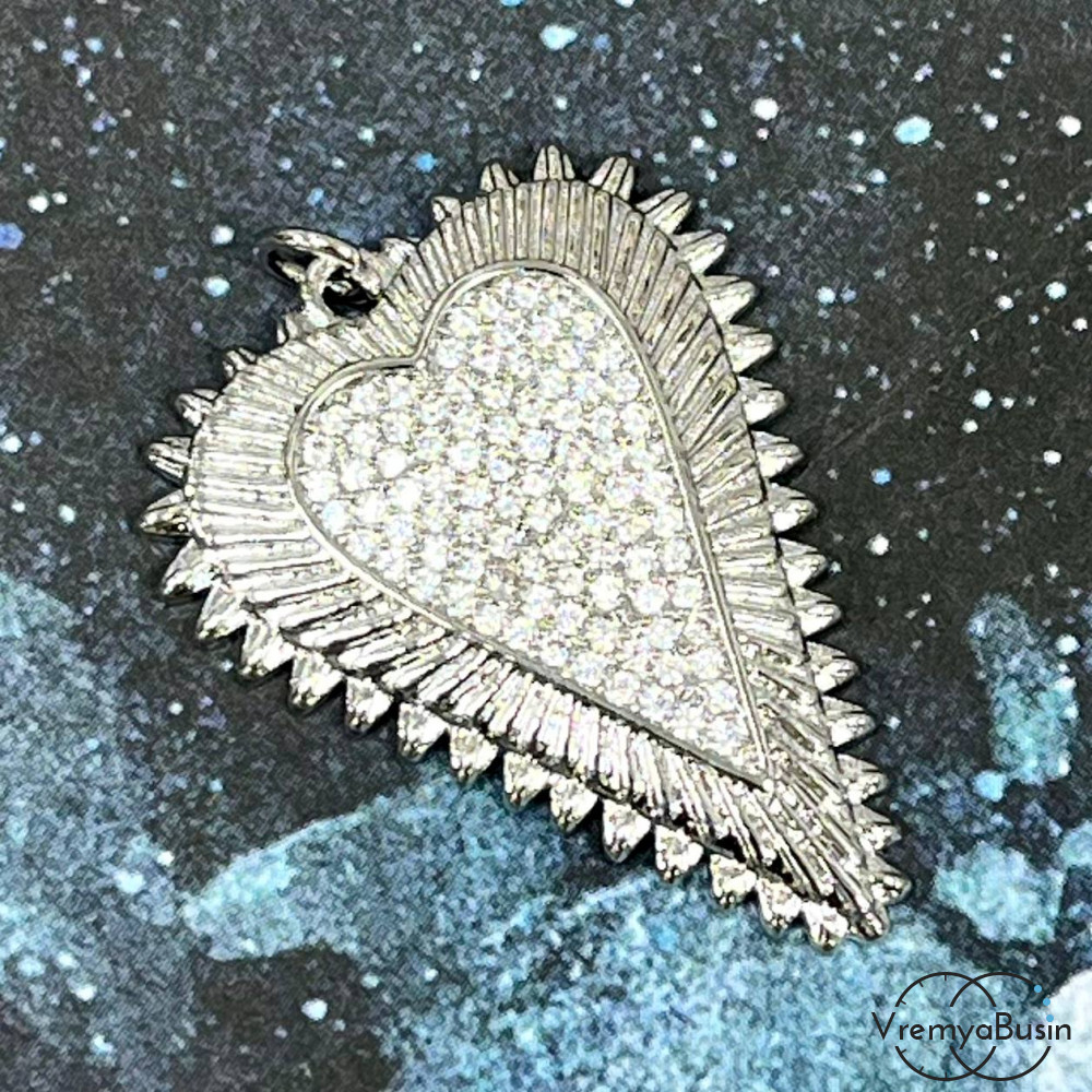 • Подвеска «Сердце», 24х30 мм, из латуни с родиевым покрытием и фианитами  (1 шт.)